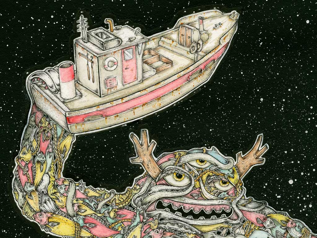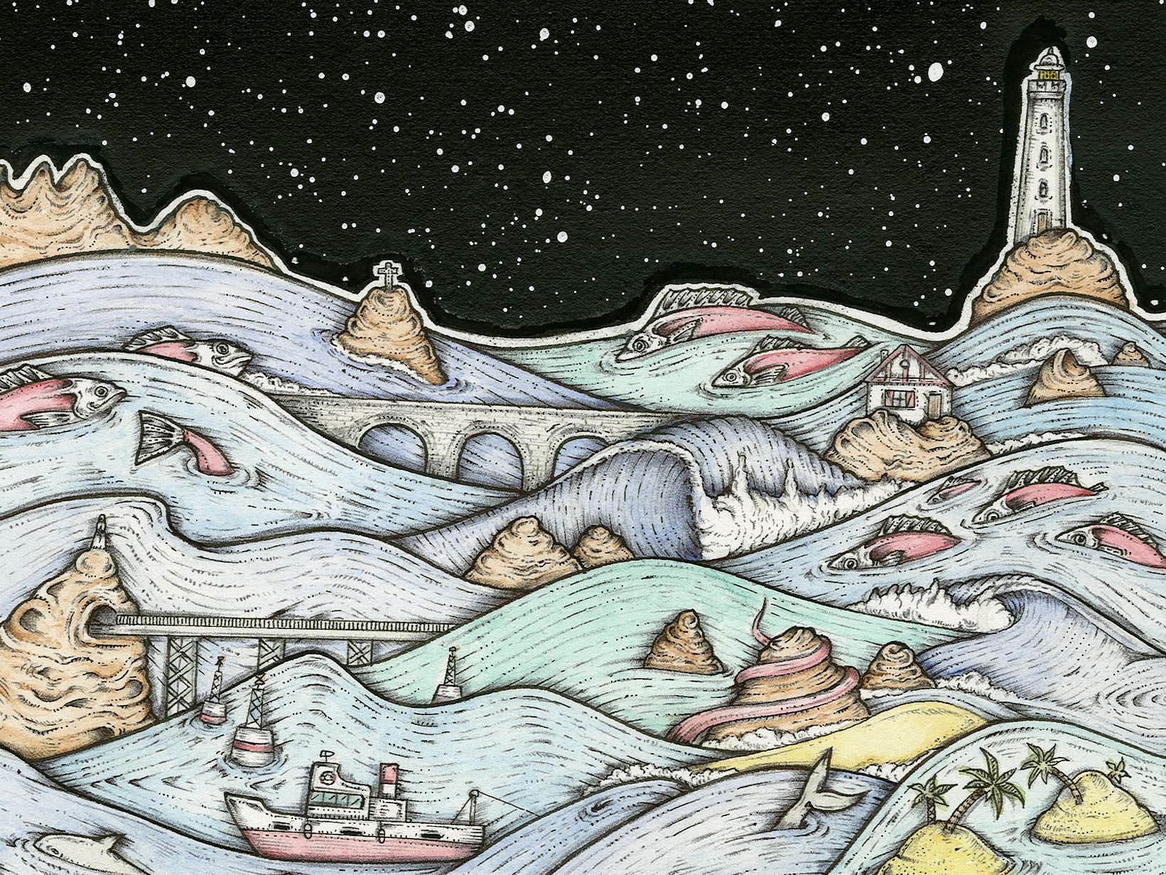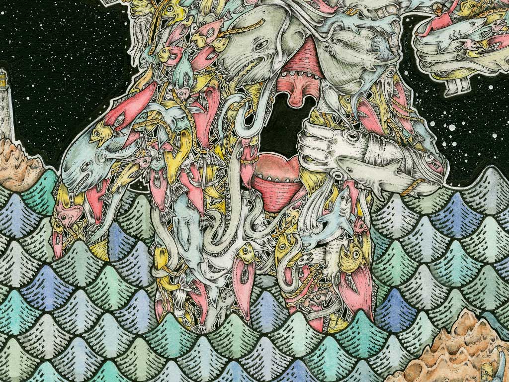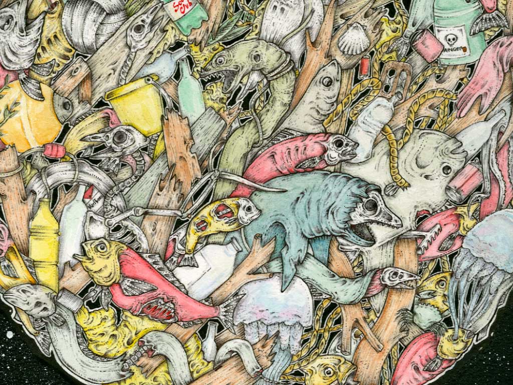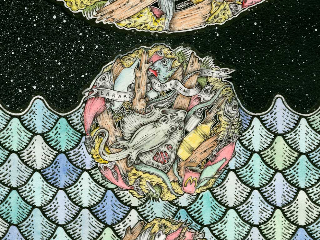 Aquarelle, encre de chine, stylo bille, spray sur papier Arches 300 gr.