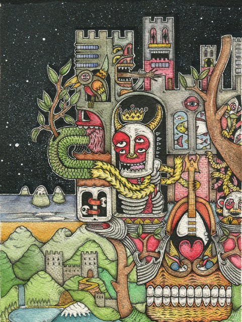 « LA BRECOUILLE » La Brecouille 2014 30 x 24 cm Aquarelle, encre de chine, stylo bille, spray sur papier Arches 300 gr. Watercolor, Indian ink, ballpoint pen, spray on Arches paper 300 gr.