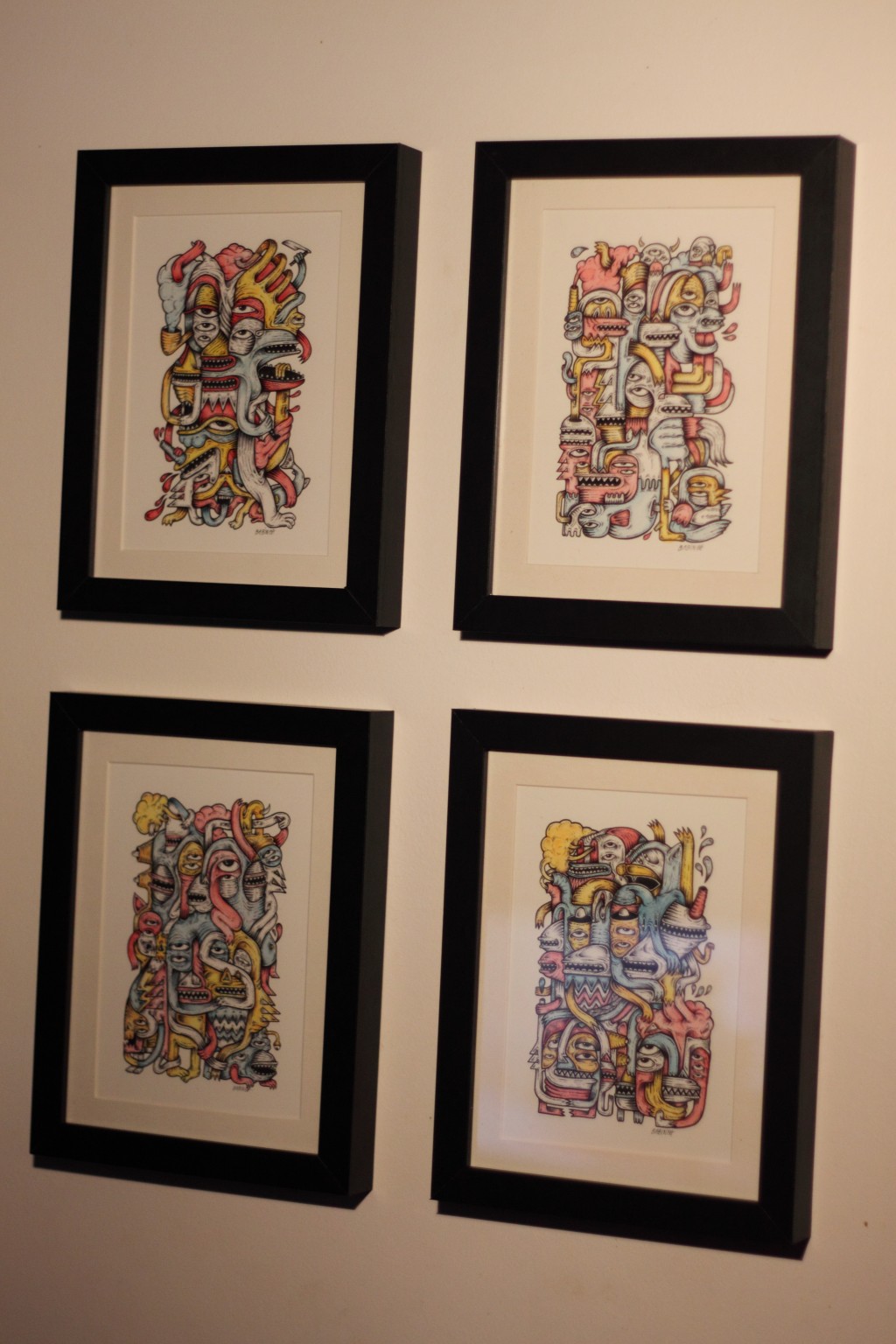 « ASSEMBLY 1/2/3/4 » Assembly 1/2/3/4 2014 24 X 18 cm Aquarelle, encre de chine, stylo bille sur papier Arches 300 gr. Watercolor, Indian ink, ballpoint pen on Arches paper 300 gr.
