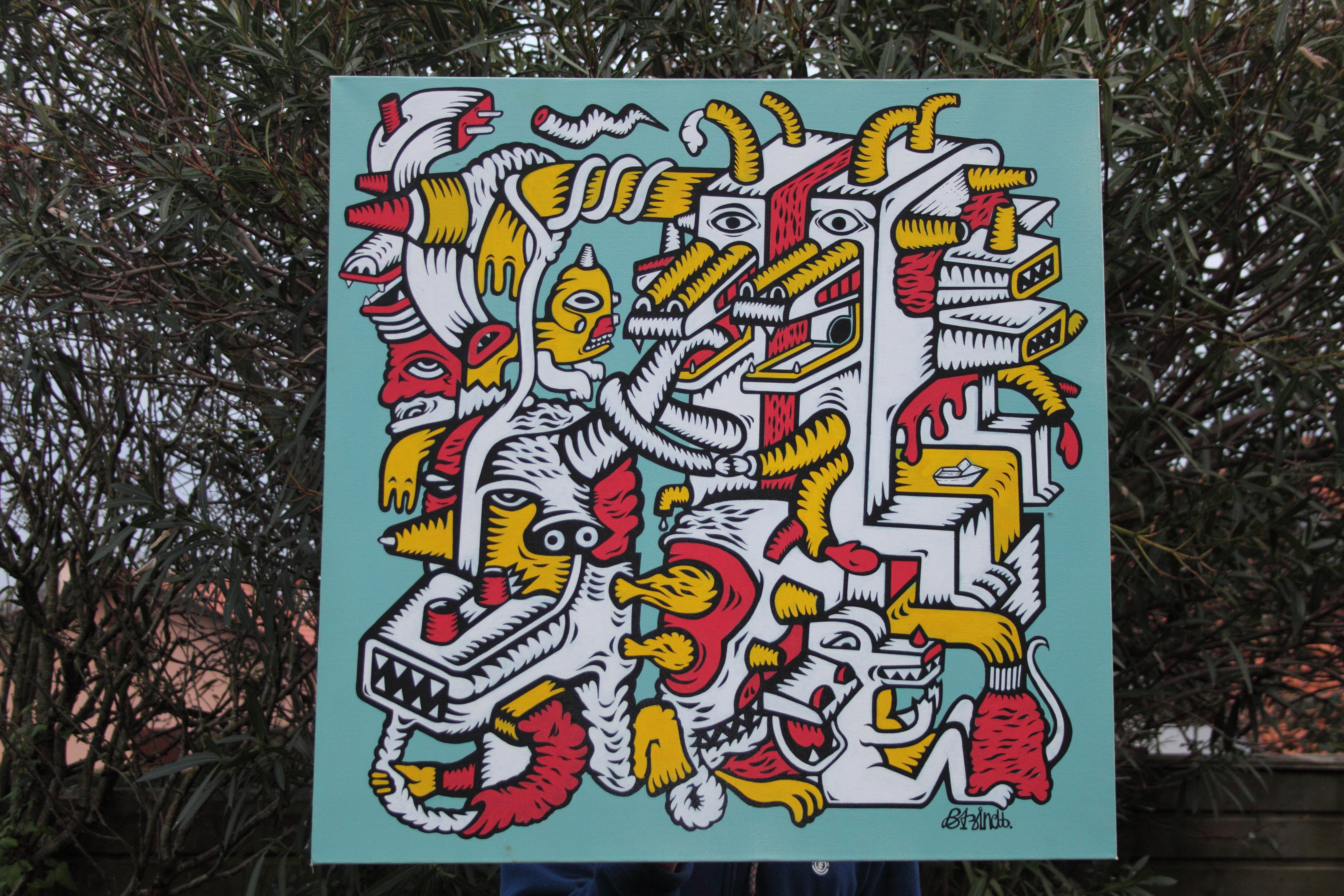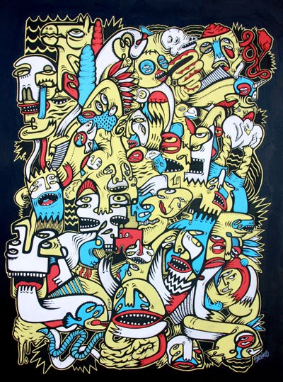 « RISE OF THE ABBYS » Rise of the abbys 2012 60 X 50 cm Acrylique, encre de chine, stylo bille, bombe sur toile. Acrylic, Indian ink, ballpoint pen, spray on canvas.