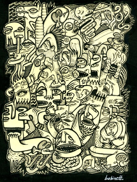 « BABINK 1 & 2. » Babink 1 & 2 2013 Encre de chine, stylo bille sur papier d’Art. Indian ink, ballpoint pen on Art paper.